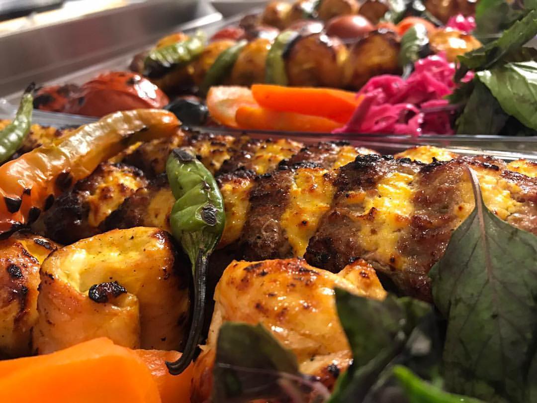یک سیخ کوبیده 100گرم +یک سیخ جوجه 170گرم
